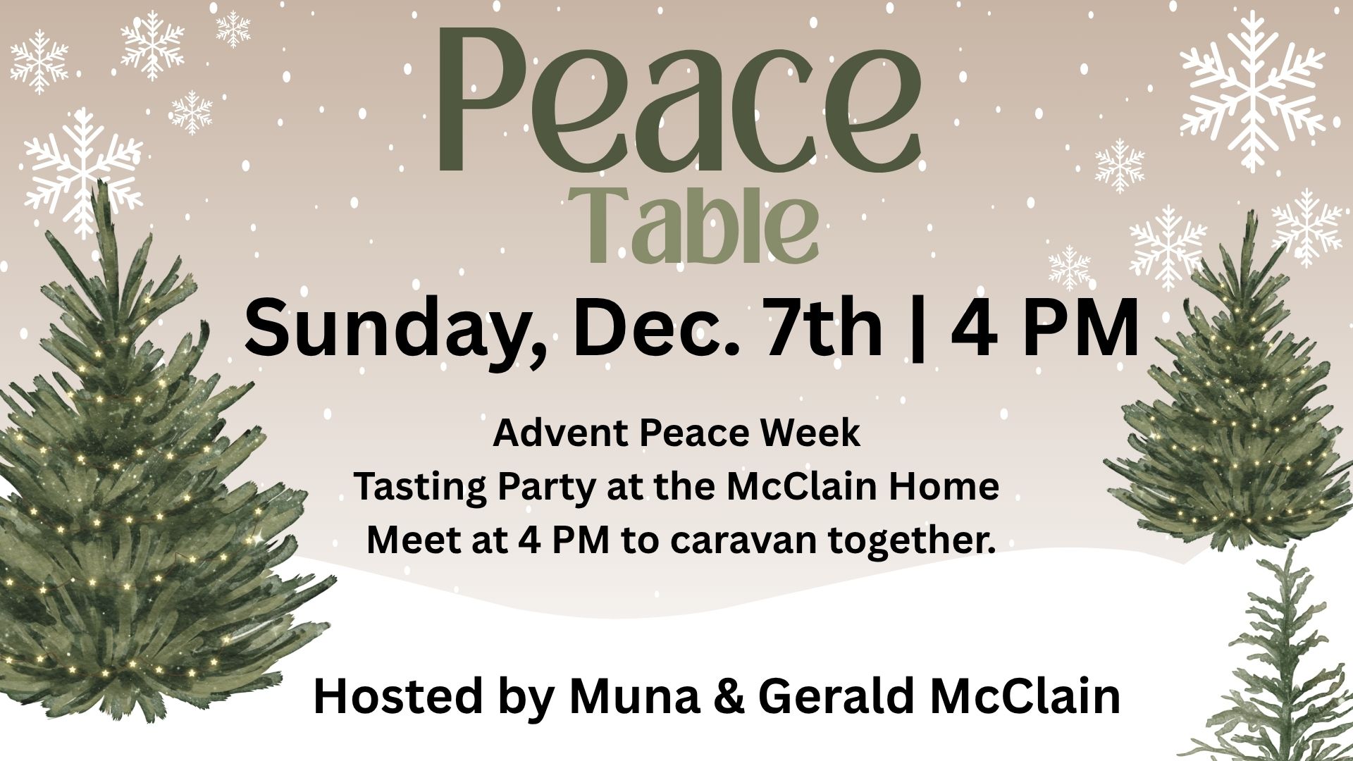 Peace Table + Add to Google Calendar + iCal / Outlook export Date Dec 07 2025 Expired! Time 4:00 pm - 6:00 pm Share this event